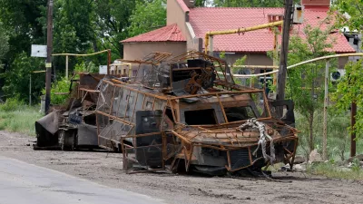 A view shows an abandoned column of armoured vehicles, which was destroyed in the course of Russia-Ukraine conflict in the village of Mykilske (Nikolskoye) near Vuhledar (Ugledar) city in the Donetsk region, a Russian-controlled area of Ukraine, May 27, 2025. REUTERS/Alexander Ermochenko / Foto: Alexander Ermochenko