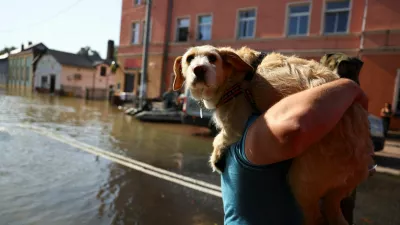 A person carries a dog, in an area flooded by the Nysa Klodzka river, following heavy rainfalls, in Lewin Brzeski, Poland September 17, 2024. REUTERS/Kacper Pempel / Foto: Kacper Pempel