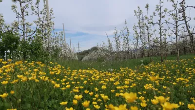 Zaradi cvetočih češenj so Goriška brda v teh dneh kot nevesta v beli čipkasti obleki. Višje ležečim predelom Brd je pozeba večinoma prizanesla. Spomladanski pogledi se tako enakovredno kosajo z jesenskimi, ko se listje trte barva v rdeče in druge tople barve. A če se za trto v Goriških brdih ni bati, so nasadi sadja bolj ogroženi. »Konec je, nismo več niti zadnje, ampak samo še rezervno kolo,« reče Aleksij Mavrič, eden večjih sadjarjev v Brdih. »Ne toliko zaradi pozeb, ki se jim višji predeli Brd pogosto srečno izognejo, ne toliko zaradi podnebnih sprememb, zato pa toliko bolj zaradi tega, ker teh sadovnjakov ne bo imel kdo obdelovati, kdo obirati sadja, kdo preventivno negovati nasadov, da bodo kos pretresom. Kdo bo še delal,« se sprašuje, medtem ko razlaga, da pri obiranju še vedno potrebujejo delovne roke, ki pa jih je vse težje dobiti. Pomagajo si na vse mogoče načine, delavce iščejo prek študentskih servisov in agencij ter zavoda za zaposlovanja, a pogosto razočarani ob koncu dneva sami končujejo delo. Na kmetiji Mavričevih, ki je znana po češnjah, marelicah, hruškah, breskvah in njihovi predelavi v sokove in marmelade, se sedaj preusmerjajo v pridelavo namiznega grozdja.