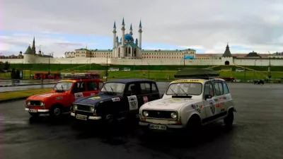 Čeprav je takšna dolga pot v prvi vrsti zelo naporna za voznika, si posebno omembo seveda zasluži tudi renault 4, torej priljubljena katrca, ki je Francija Škrjanca kar osemkrat popeljala po prostranstvih največje države na svetu, le enkrat, ko so šli z odpravo na sever do Belega morja, pa je to pot opravil s terenskim vozilom.