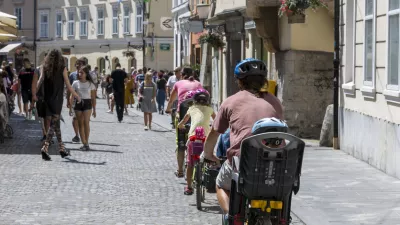 Ljubljana, Slovenia - August 15, 2019: Family rides bicycles on the street of Ljubljana / Foto: I_valentin