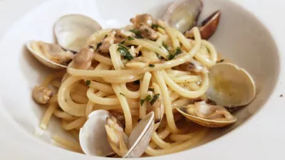 Tudi špageti z vongolami (18 evrov) so svojo nalogo opravili z odliko. Je pa v vlogi testenin vredno pokusiti velike pacchere, ki so se v zadnjem času predvsem po zaslugi kuharskih bratov Cerea iz slavne restavracije v Bergamu razselile po svetu, tudi po Sloveniji.