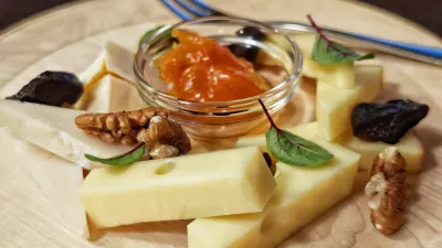 Del omizja se je namesto za sladico odločil za krožnik sirov: ementalec in dimljeni kravji sir sta bila od soseda Gartnerja, sir iz senenega mleka je eno leto zorel v slanici pri Cotku iz Tržiča, kozji sir je bil Orešnikov. Lep, dišeč zbir, podprt z marmelado, suhimi slivami in orehi.