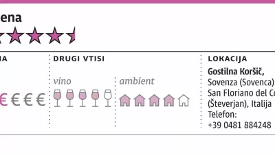 Naj omenimo še vinsko karto. Ob svojih vinih imajo na voljo vse, kar se pridela v števerjanskih vinogradih. Le nekaj vin je iz Slovenije in nekaj z drugih briških lokacij. Za osvežujoč začetek strežejo penečo rebulo soseda Alessia Komjanca za štiri evre na kozarec. V drugi fazi smo pili simpatičen, svež tokaj iz kleti Il Carpino po res ugodni ceni 24 evrov. Takšna vina so prek meje vsaj 40 evrov. Ko smo se preselili na mesne jedi, smo si naročili kozarec zelo dišeče hišne (pri Koršičih so tudi vinarji) zvrsti merlota in modrega pinota za štiri evre na kozarec.