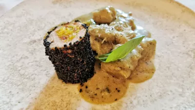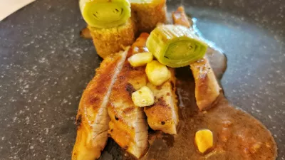In v tem smislu se je Gaubejev zeleni silvanec priključil pečenemu ostrižu na pireju iz hokaido buče z okisano cvetačo in omako iz cvetače. Za tiste, ki se z ribami ne bratijo radi, se k zelenemu silvancu lepo poda tudi piščančja rulada s slanino in jajcem, povaljana v črnem sezamu, ki ji kot prilogo pristavijo bučne njoke s kozjim sirom in brstičnim ohrovtom.