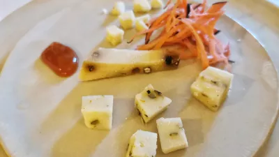 V nedeljo, ko smo se mastili v Črešnjevcih, so za sladico ob prleški gibanici ponudili ne presladka jabolčni in borovničev zavitek z borovničevim sladoledom. A so se zares ustavili šele potem, ko so nam prinesli še tri kozje sire s kmetije Mali raj – enega s čilijem, drugega s poprom in tretjega z zelišči.