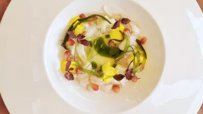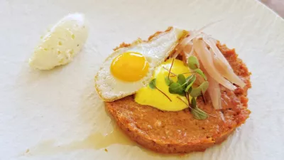 Ceviche brancina z algami, granatnim jabolkom in limonovo kremo je bil izvrsten, razmeroma velik in nekaj cenejši (14 evrov), kot smo navajeni v naših turističnih centrih. Tatarski biftek (14 evrov) obložijo z okisano čebulo in pečenim prepeličjim jajcem, kislino pristavi limonova krema, za opečen kruh je na svojem mestu spenjeno maslo. Porcija je velika, večja, kot smo jih vajeni, in ko govorimo o kruhu, so na voljo tri sveža mehka peciva, ki so sijajno podprla tudi piščančjo jetrno pašteto, postreženo z malinovo kremo, bučnim oljem in čebulnim čatnijem, vse skupaj za 11 evrov.