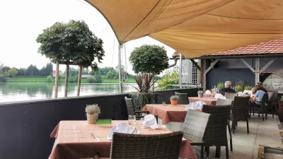 Verjetno je treba Ribiča obiskati, ko je toplo in ko je mogoče sedeti na urejeni terasi ob Dravi. Nam je to v začetku jeseni uspelo, kar se vidi po slikah, in od blizu smo gledali v lenobno Dravo ter se spraševali, ali na trenutke ne teče celo nazaj proti Avstriji, ob tem pa razmišljali, kaj popiti. Na sicer majhni, a učinkoviti vinski karti je nekaj izvrstnih vin po ne previsokih cenah in pri vseh so navedene tudi cene za kozarec. A natakar je bil kategoričen. To ne drži, večina vin je na voljo le, če vzamete celo steklenico. Zakaj torej vinski list laže, ni znal povedati. A ga z zoprnimi vprašanji in podvprašanji nismo hoteli preveč vznemirjati, vrt, ki je tisto soboto sijal v soncu in občasno skoraj pokal po šivih, je bil kar lep izziv za dva natakarja, oba sta imela veliko dela.