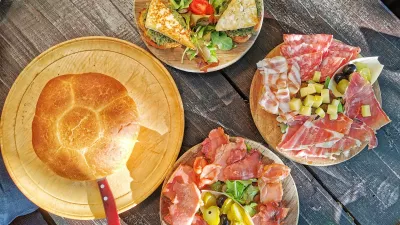 Velike bruskete s popečenim sirom, topel pečen pršut, mešane mesnine in pogača, ena najboljših v Istri. / Foto: Miha First