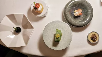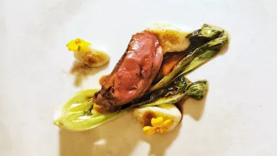 Začeli so s kvintetom umetelnih, a prepoznavnih pozdravčkov: parmigiana v obliki miniaturnega jajčevca, mini ocvrta pica s paradižnikom, dimljeno burato in inčunom, v ekipi je bil tudi kanolo, ne sladek, ampak z bakalarjem, ribji »pršut« so postavili na repo in zašpičili s hrenom, telečji mus je sodeloval z jurčki, kavo in tartufi. Pet kratkih in neverjetno učinkovitih pozdravov. Pa še ni bilo konec. Še naprej so pozdravljali, v šesti verziji s sijajno zamišljeno bistro piščančjo juho s pehtranom in kamilico. Sledil je košček sladke modre (ja, invazivne) rakovice s stebelno zeleno ter prelivom iz kivija in jabolka. Sedem jedi, ki bi jih lahko takoj ponovili.