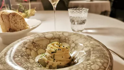 Potem so na vrsti testenine, in to kakšne! Prve so bile hladne, tanki špageti oziroma angelski laski znamke Benedetto Cavalieri so bili obogateni s sezamom, pečeno papriko, chorizom, surovimi škampi in kokosovo smetano. Sijajna jed. Nič niso zaostajali tortelli, polnjeni s friko, ki jim dodajo zimske okuse repe, rdeče pese in belega tartufa. Tako pri laskih kot pri tortellih gre za jedi, ki bi lahko uspešno nastopale tudi samostojno, zunaj menija, res so bile pripravljene tako, kot znajo testenine pripraviti samo naši sosedje, a so v opciji »à la carte« zelo drage, vsaka po 45 evrov.