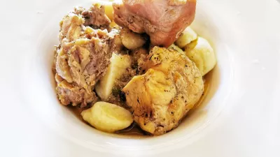 V našem primeru smo se lotili sicer v osrednji Sloveniji manj popularne verzije njokov s kokoško, ki jo ravno v Istri tradicionalno pripravijo zelo okusno in ni, kot bi pričakovali, podrejena govedini, divjačini ali celo tartufom, ki jih v Parecagu niti nimajo. Na drugi strani smo dobili tudi bolj običajne njoke z divjačino.