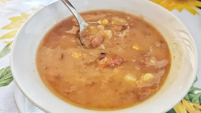 Razmeroma velike porcije tako kokoške kot divjačine stanejo 12 evrov, skoraj pol ceneje kot spodaj na morju, v bolj turističnem delu Primorske. Še nekoliko ugodnejši so bili bogati in gosti bobiči s trganim mesom, koruzo in fižolom – stali so štiri evre. Dodajte še kos kruha in že porcija bobičev bi lahko zadostovala za kosilo. Če vam je to pretežko, običajno skuhajo tudi lažjo govejo juho.