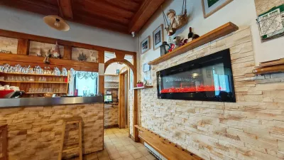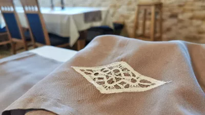 Jedilnica v Kmečkem hramu Fortuna je slikovito opremljena, to moramo dodati. Na svojem mestu je televizijski kamin, veliko je volnenih rož in seveda še več idrijskih čipk, seveda, saj smo v krajih, kjer so tovrstne mojstrovine del zgodovine, sedanjosti in gotovo, zakaj pa ne, prihodnosti. Podobno je tudi z žlikrofi.