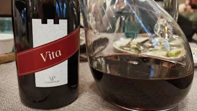 Mimogrede, tudi vino je predvsem domače. Konoba Rino je namreč povezana s pomembno istrsko vinsko kletjo Prelac, kar pomeni, da že na začetku ponudijo svojo solidno, zelo suho klasično penino in potem konkretno alkoholno rdečo zvrst Vita (48 evrov), ki je ostala na mizi do konca kosila. V hladilnikih imajo sicer tudi nekaj vin drugih istrskih oziroma hrvaških kleti, najde pa se tudi kakšna slovenska buteljka.