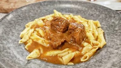 Na drugi strani so bili rezanci, prvič v zgodovini naše ekipe smo si jih naročili z oslom, visoko pohvaljeni z vseh strani, tako okusna omaka kot testenine. Morda je treba pri toplih predjedeh omeniti še cene. Bobiči stanejo šest, testenine pa 14 evrov. Ni predrago, pa še porcije so bile bolj za dve osebi kot za eno.