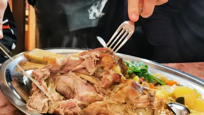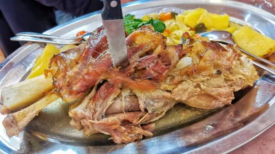 Za koliko oseb je pravzaprav pripravljena telečja krača? V našem primeru je bila težka kilogram in 600 gramov, kar stane 48 evrov. Priporočili so jo dvema osebama, kar je seveda popolno pretiravanje, zelo mehko telečje meso bi lahko zadovoljilo kake štiri osebe. Še posebej če vemo, da so bile zraven tudi močne priloge, pečen krompir in zelenjava.