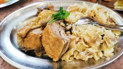 Še najbolj podobna našim bestsellerjem je telečja juha z rezanci in jušno zelenjavo. Porcije juh niso majhne, strežejo jih v velikih pločevinastih jušnikih, tako da je ena porcija oziroma en jušnik (pet evrov) pravzaprav dovolj za dva ali tri krožnike.