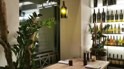 V Weinbanku, vinski banki torej, imajo eno najobsežnejših vinskih kart na svetu, kar je za gosta nadloga, saj 200 drobno tiskanih strani v dveh debelih knjigah bolj spominja na klasičen ruski roman kot na vinsko ponudbo. Zato je tudi nesmiselno sprenevedanje, ko čez pet minut pridejo vprašat, ali smo se že odločili. Ja, nismo, a ne. Smo na strani devet, pridite nazaj konec februarja.
