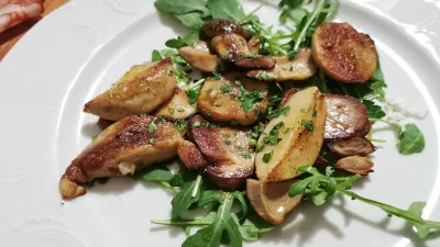 Nič posebnega, bi lahko rekli, pa vendar tako okusnih jurčkov (samo) s soljo, poprom in peteršiljem ne jemo pogosto. Škoda, da jih postavijo na nepotrebno rukolo. Prijazno mastno špehovko, še posebej v takšnih količinah, pa je tako in tako težko dobiti pri nas. Če niste za tako masten začetek, ponudijo tudi goveji karpačo ali radič z žara, predjedi pa stanejo okoli deset evrov.