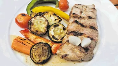 Telečji hrbet in zelenjava z žara / Foto: Miha First