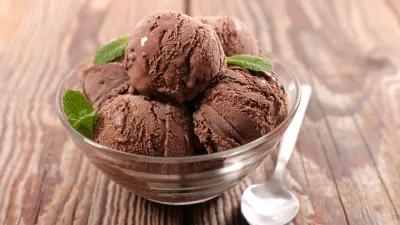 V stekleno posodo stresemo kakav v prahu, prilijemo vodo in polovico smetane ter vse skupaj dobro premešamo z lopatico. Maso prelijemo v posodo za mešalnik, dodamo preostanek smetane, kondenzirano mleko, vaniljev ekstrakt ter sol in vse skupaj zmiksamo. Zmes potem prelijemo v posodo in jo prekrijemo s folijo za živila ter jo za vsaj pet ur postavimo v zamrzovalnik. Sladoled okrasimo z listi mete in ga postrežemo.