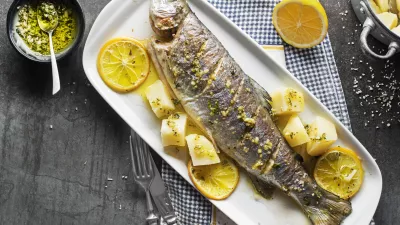 Pečena postrv s krompirjem