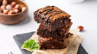 Pečico segrejemo na 180 stopinj Celzija, pekač pa obložimo s peki papirjem. Maslo in nalomljeno čokolado stopimo nad vodno kopeljo in pustimo, da se malo ohladi. V ločeni posodi zmešamo jajca in sladkor, nato pa postopoma v to zmes vmešamo še stopljeno čokolado in maslo, vaniljev ekstrakt, ščepec soli, presejano moko, pecilni prašek in kakav ter vse skupaj nežno premešamo, na koncu pa dodamo še na grobo nasekljane oreščke. Maso vlijemo v pripravljen pekač, naš kolač pa pečemo približno 20 minut. Pustimo nekaj časa, da se ohladi, nato pa ga narežemo na kose in ga postrežemo v družbi sladoleda ali sladke smetane.