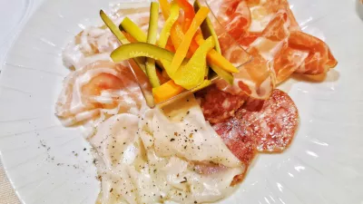 Tri spremembe so se zgodile, odkar smo pred kakšnimi tremi ali štirimi leti zadnjič jedli v starem mestnem jedru Čedada: pršut, ki ga narežejo, ni več iz D'Osvaldovih delavnic, ampak ga kupujejo v očitno dostopnejši pršutarni Bagatto v San Danieleju, na začetku ni več pozdravčka iz kuhinje, pred leti je bila na mizi puranova šunka v nekakšni blagi solatki, in tretjič, ponudba toplih predjedi je nekoliko ožja.