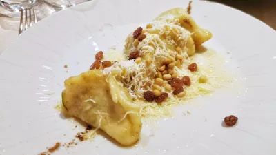 Cjalsons s špinačo, rozinami, pinjolami in dimljeno rikoto Foto: Miha First