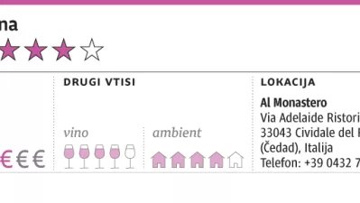 V Al Monasteru v Čedadu kuhajo izrazito furlansko kuhinjo z vsemi pripadajočimi testeninami in mesninami, a je treba reči, da če kje, se bodo zanimivih rešitev pri njih razveselili vegetarijanci. Pa naj gre za flan, gratinirano zelenjavo ali serijo predjedi. Jedli boste za kakih 35 evrov na osebo.