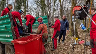 Predpripravo za dviganje odpadkov so opravili že dan prej in postavili jeklenico ter električni vitel za dviganje. Leta 2022 so med čiščenjem Jame nad Rosenbrunom južno od Kočevja imeli velike težave z neenakomernim navijanjem pletenice in stalnim varnostnim izklapljanjem. Tokrat so vitel obesili na dvojna škripca, dvigali odpadke do 150 kilogramov in pazili na navijanje pletenice. Glavno težavo, prekomerno izklapljanje oziroma preobčutljivost varnostne zavore, je odpravil Uroš Mervič in potem je delo steklo kot namazano. Prva ekipa je bila že v breznu in takoj so začeli nakladati odpadke v plastične sode, tudi zato, da so vsaj nekoliko zmanjšali smrad po mrhovini. V jami je bilo namreč poleg različnih odpadkov in ostankov sveč tudi veliko živalskih ostankov – v glavnem v vrečah, ki so že razpadale. Ko so jih dvignili, je vsebina padla ven, tako da je na koncu imela težko delo tudi ekipa na traktorski prikolici, ki je ločevala vreče in živalske odpadke. Te je potem prevzela in odpeljala veterinarska higienska služba Nacionalnega veterinarskega inštituta Slovenije, enota Novo mesto.