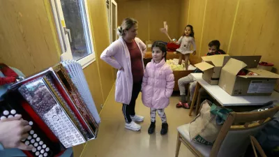 Deklici je iz šolske torbe molela barbika. »Jaz sem ji jo kupil,« se je pohvalil starejši bratec G. in nam pokazal svojo najljubšo »igračo«. To je harmonika, ki jo odlično obvlada. Tudi klavir zna igrati. Mami mu za učenje harmonike enkrat na teden plačuje učitelja. Čeprav živijo skromno, ji za ta namen ni škoda vsakič odšteti dvajset evrov. G. nam je tudi pokazal, kaj se je že naučil. Zvoki harmonike so utesnjeni bivalni zabojnik v hipu napolnili z veseljem. Najbolj se jih je vzradostila mala M., ki je odvrgla pajkice in živahno zaplesala po bratovi postelji. Za Tomaževo pobudo »hlače gor in na koncert« se ni zmenila. Tudi ne za mamičino opazko: »Zakaj si se pa slekla, ti punca moja?« Ko smo Stanko vprašali, ali je naporno s štirimi otroki, je odvrnila: »Ko sva z M. dopoldne sami, je zelo mirna. Ko so vsi doma, pa človek ne more verjeti, kako se razveseli sestrice in bratcev ter se razživi.« Gospa Zora pa je pripomnila: »Ti otroci so zelo prisrčni. Ne smejo imeti občutka, da se jim je zgodilo nekaj groznega.«