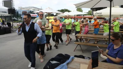 Marka Vozlja so tisti, ki ga dotlej še niso videli v živo, lahko spoznali na druženju Nedeljskega dnevnika z bralci pred začetkom poletja v Termah Čatež in se od blizu prepričali, da ne zna samo dobro peti, temveč da je tudi izvrstni voditelj prireditev in animator.