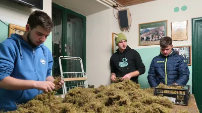 »Vzameš za en povšter mahu, ga nacufaš, odstraniš vso zemljo … biti mora čim bolj čist. Potem ga začneš čim bolj na trdo zvijati, takole,« je mladi član cerkljanske laufarske družine po stari leseni mizi valjal kepe mahu v nekakšne zbite rolade, ki jih bodo kasneje prišili na obleko pusta, osrednjega lika cerkljanskih laufarjev. V ozadju je bilo slišati harmoniko, dišalo je po mahu in po ocvirkovci, dobri volji in skorajšnjem pustu. Zmotili smo jih sredi vrhunca priprav na najbolj norčav čas v letu. Prišli smo s kopico vprašanj, izvedeli pa zgolj tisto, kar veleva tradicija precej skrivnostnega običaja.