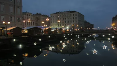 Pričakovanja prazničnega vzdušja v mestu ob morju so odveč. Klasično zadržana okrasitev ne krepi vzdušja pričakovanja, ki se ob megli, v katero je ves dan potopljeno mesto, pospešeno izgublja. Lahko pa v družbi Jamesa Joycea mežikaš zvezdicam nad Velikim kanalom ali na Trgu zedinjene Italije postaneš pred skromnimi jaslicami. Drsališče na Ponte Rossu do pol enajstih zvečer osvajajo laični akrobati. Kuhano vino je po 3 evre (Zagreb 3,80 evra, Ljubljana od 4 do 5 evrov), prosecco z vsaj tremi čipsi oziroma oreščki 4,5 evra (v lokalu). Lični damski klobuki, tudi v bolj pisanih barvah, stanejo na stojnici 45 evrov. Gužve pa v tržaških trgovinah ni, razen pri Gigiju na Opčinah, ampak to je druga zgodba – se ve, zakaj!
