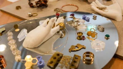 Da so za nakitom vedno zgodbe in da ima ta velikokrat večjo simbolno in čustveno vrednost od materialne, sta nam v sosednjem prostoru potrdila tudi profesionalna oblikovalca nakita Sanda Vidmar in Peter Dragolič. Studio za oblikovanje nakita Juvelirij, kjer poleg njiju ustvarja še Kristina Drnovšek, ni klasična zlatarna, ampak čisto prava delavnica, kjer lahko stranke iz prve roke izvedo, kdo stoji za nakitom in kako ta nastane. »Ko poliramo, smo črni kot mehaniki. Pa hrupno je pogosto. Večkrat se porežemo, poškodujemo se med vrtanjem, kakšna fina žagica se kdaj zapiči v prst,« se je posmejal Peter, zlatar stare šole, ki je še imel priložnost obiskovati zlatarsko šolo v Celju. Osrednji del njegove delovne mize je nekakšen lesen nos, zlatarji mu pravijo fajlnadl, ob katerega upre material, da ga lažje oblikuje.