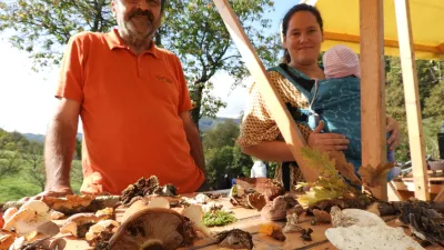Če smo ljudje pri divjih rastlinah še malce neuki ali se morda soočamo celo s predsodki, potem je tradicija nabiranja gob v Sloveniji od nekdaj močna. Prenaša se iz generacije v generacijo. Na stojnici, posuti z gobami, sta Romina Pleško, velika poznavalka gob iz škofjeloškega gobarskega društva, in Mirko Kunst iz Gobarskega društva Kozjansko Kozje predstavila gobe, ki jih v tem času najdemo v gozdu. Če bi bila rast prava, bi bilo gob menda za tri take mize. »Ah, ne, nikakor niso vse užitne,« je opomnila Romina, »niti ni enotnega recepta, po katerem bi ločili užitno od neužitne gobe. Po eno in eno jo moramo poznati.«