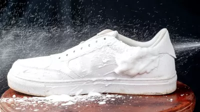 Čistilno pasto za superge iz ene žlice sode bikarbone, ene žlice belega kisa in ene žlice tople vode nežno vtrite v površino čevljev s krožnimi gibi. Foto: iStock