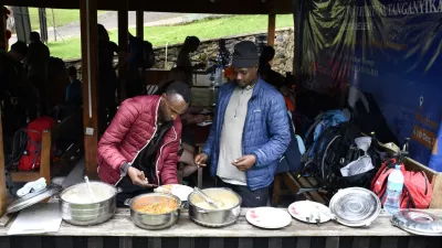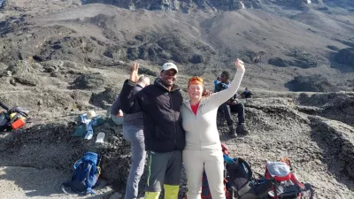 Tudi pri nas je kar nekaj agencij, ki na črno celino vozijo slovenske avanturiste. Kot nam je povedala sogovornica Nataša Ivančič, ki se je s še osmimi Slovenci v začetku leta odpravila osvojit vrh, je organizacija potekala brez pripomb. »Leteli smo z Dunaja z vmesnim prestopom v etiopskem mestu Adis Abeba. V Tanzaniji nas je pričakal Paul, predstavnik lokalne agencije, ki smo ga hitro preimenovali v Pavleta. Seznanil nas je s potekom potovanja in spremljevalno ekipo,« nam je povedala simpatična sogovornica in dodala, da jih je na poti spremljalo kar 37 domačinov. »Po dva kuharja in dva natakarja. Pet gorskih vodnikov, Paul, Anthon, Elias, Baraque, Manuel, je pomagalo pri vzponu na goro. Drugi so bili nosači, ki ne marajo, da se jim reče šerpe. Oni so portierji, večinoma mladi, stari okoli 30 let. Anthon, eden od gorskih vodnikov, je stal na vrhu gore že vsaj sedemdesetkrat, večina od njih vzponov niti ne šteje več.«