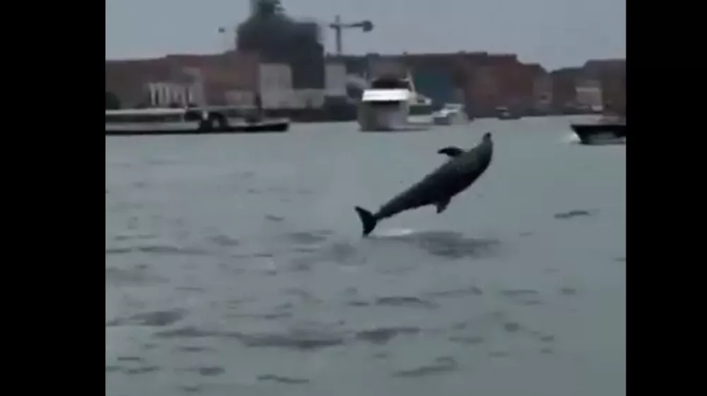 V Benetkah so delfine nazadnje opazili leta 2021 v času pandemije covida-19, ko je bil ladijski promet močno omejen.