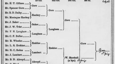 Tekmovanje je do tretjega kroga teklo kot po maslu, dokler niso v polfinalu ostali le trije tekmovalci (zaradi števila udeležencev, skupno jih je bilo 22, in uporabljenega formata – izločilnega sistema brez nosilcev). Da bi rešili zagato, so organizirali žreb, po katerem je William Marshall, osemindvajsetletni cambriški dobitnik nagrade blue za tenis, napredoval v finale brez boja. Tam se je pomeril s poznejšim zmagovalcem Spencerjem Gorom, osemindvajsetletnim igralcem »racketsa« (gre za nekakšnega predhodnika sodobnega skvoša) iz Wandswortha, ki je pred tem v edinem polfinalu premagal Charlesa Heathcota v treh nizih.