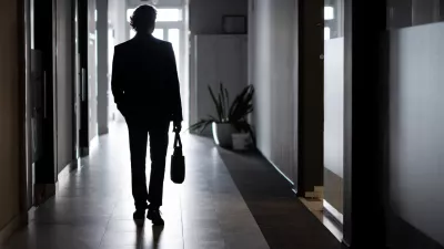 Silhouette of a businessman in full height, a man inside the office walks along the corridor, companies, an employee in a business suit.