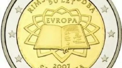 V Banki Slovenije so leta 2007 ob 50. obletnici podpisa Rimske pogodbe izdali spominski kovanec za 2 evra. / Foto: Arhiv Banke Slovenije