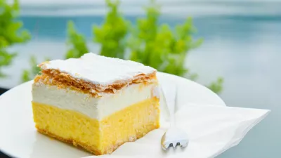 »Kremna rezina je posebnost slovenskega Blejskega jezera. To je slastna kremna torta z zlatim hrustljavim maslenim pecivom kot osnovo. Prelijemo ga z okusno vaniljevo kremo, stepeno smetano in končamo s plastjo tankega maslenega testa. Torto tradicionalno posujemo s sladkorjem v prahu in postrežemo narezano na kocke. Zgodba o kremni rezini se je začela s prihodom chefa Ištvana Lukačevića v blejski hotel Park, kjer je leta 1953 spremenil madžarsko kremno torto tako, da je vanjo dodal pravo razmerje stepene smetane.«