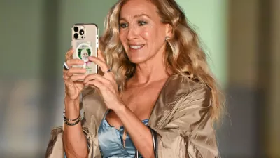 NEW YORK, NEW YORK - OCTOBER 24: Sarah Jessica Parker is seen on the set of "And Just Like That..." Season 3, the follow up series to "Sex and the City" at Lincoln Center on October 24, 2024 in New York City. (Photo by James Devaney/GC Images)