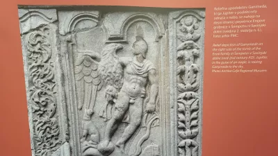 Iz Zgornje Pohance v bližini Brežic izvira rimskodobni nagrobnik iz konca 1. ali začetka 2. stoletja. Razstava se posveča predvsem zatrepu nagrobnika, na katerem se je ohranil relief sedečega dečka, ki ponuja čašo velikemu orlu. V upodobitvi prepoznamo mit o trojanskem kraljeviču Ganimedu. Obdarjen je bil z nezemeljsko lepoto in vanj se je zaljubil sam Zevs. Spremenil se je v orla, dečka ugrabil in odnesel na Olimp. Tam je Ganimed postal nesmrten in stregel bogovom kot točaj, kakor so v stari Grčiji mladeniči stregli vino odraslim moškim.