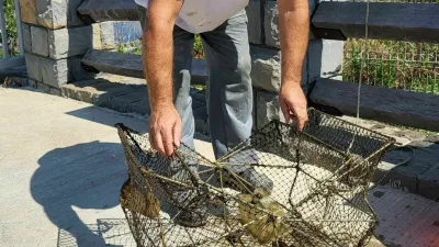 Nevio Vižintin v vršo nastavi ribo, da privabi modre rakovice. / Foto: Katja Gleščič