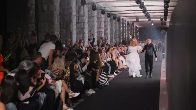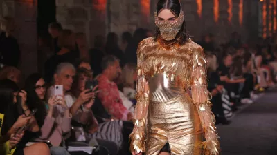 Nova Gorica, pred Mestno obcino Nova Gorica.Modni spektakel Benedetti Life, na katerem je modna oblikovalka Matea Benedetti predstavila edinstveno modno revijo kosov, ki zdruzujejo tehnoloske inovacije, ekolosko ozavescenost in brezcasen glamur.