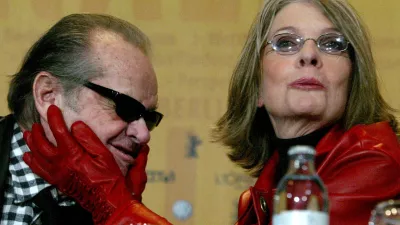 FILE PHOTO: U.S. actress Diane Keaton jokes with her fellow countryman actor Jack Nicholson (L) during a news conference to present their new movie 'Something's Gotta Give' at the 54th Berlinale International Film Festival in Berlin February 6, 2004./File Photo / Foto: Arnd Wiegmann